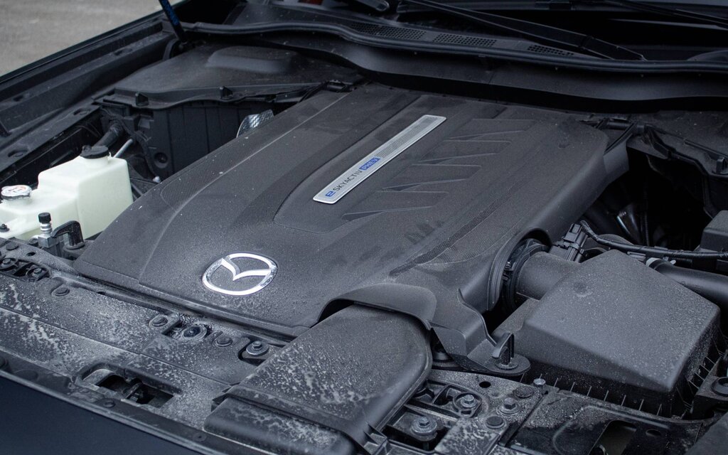 Bei den anderen 2026 CX-70, also denen, die mit dem turbogeladenen Reihensechszylindermotor mit Mild-Hybrid-Technologie ausgestattet sind, ändert sich nichts. Im Normalbetrieb (durchschnittlich 9,3 l/100 km) leisten sie übrigens weiterhin 280 PS und 332 lb-ft Drehmoment, mit der Hochleistungsvariante, die bevorzugt mit Superbenzin läuft (9,5 l/100 km), bis zu 340 PS und 369 lb-ft Drehmoment.