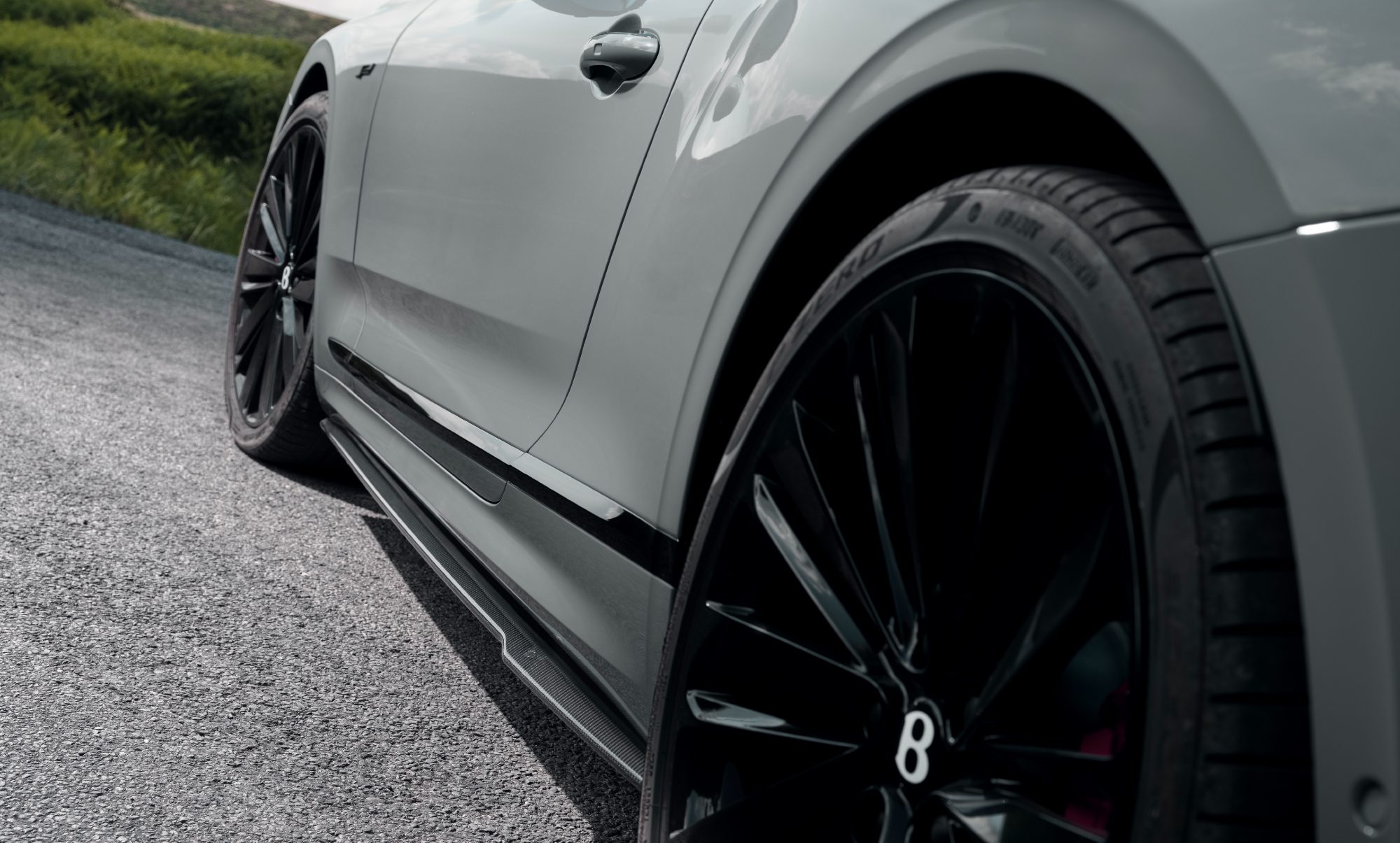The Carbon Fibre Styling Specification introduces a front splitter, full length side sills with integrated electroformed Bentley badges, mirror caps and a larger rear diffuser. All components are crafted in carbon fiber and mirror matched across the centerline, following the same approach Bentley uses for interior veneers. The front splitter has been reinforced to double its previous thickness for added strength, while the diffuser is larger than before to enhance stability and presence.