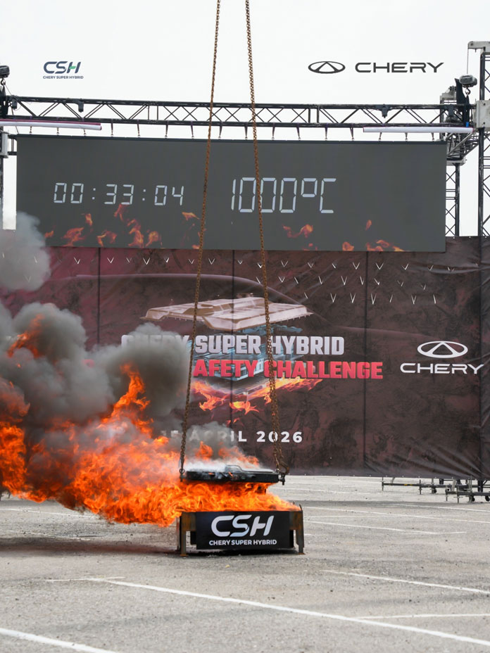 Çin’in otomotiv alanındaki ihracat lideri Chery, Malezya’da gerçekleştirilen Güvenlik Challenge’ı büyük başarıyla tamamladı. Böylece Chery CSH hibrit bataryası güvenliği ve kalitesini küresel testlerle kanıtlamış oldu. Tamamen açık alanda ve standartlara sıkı şekilde bağlı kalınarak gerçekleştirilen testte batarya, 1000°C yüksek sıcaklıkta yanma ve 80 saniye boyunca sürekli alev temasına maruz kalırken yapısal bütünlüğünü korudu ve herhangi bir anormallik göstermedi. Bu sonuçlar, CSH hibrit bataryanın ultra yüksek güvenlik ve dayanıklılık seviyesini açıkça doğruladı.