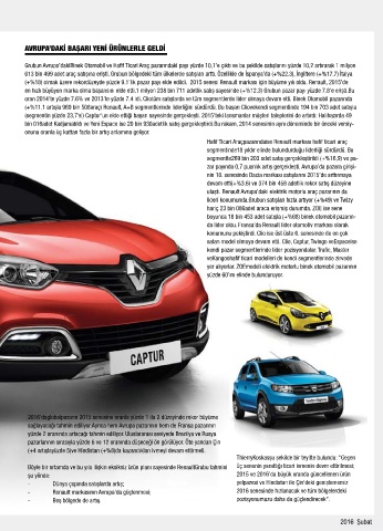 2015 senesinde Renault Grubu’nun zar payında 0,7 puanlık artış gerçekleşti. Avrupa’da pazara girişi-