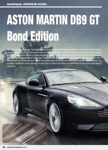 toplam 150 adet üretilecek DB9 GT Bond Edition’ı yakın zamanda Türkiye sokaklarında da göreceğiz. D&D Motorlu Araçlar olarak geniş kullanımını sağlar. gösterime girmesinde ve bu ortaklığımızı Edition’a has bir ekran belirmesiyle James