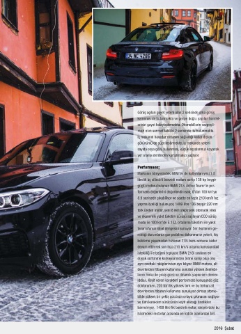 kaliteyi hissettiriyor. Kabin tasarımı sürücü odaklı, 218i vücudu çok iyi saran ön koltuklar modu ile 100 km’de 5.1 Lt. ortalama tüketimi ile yakıt