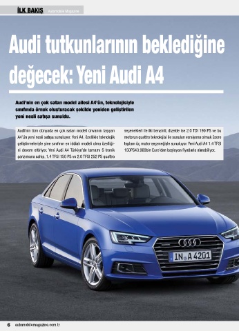 İLK BAKIŞ Automobile Magazine Yeni Audi A4 showroomlarda yerini aldı..