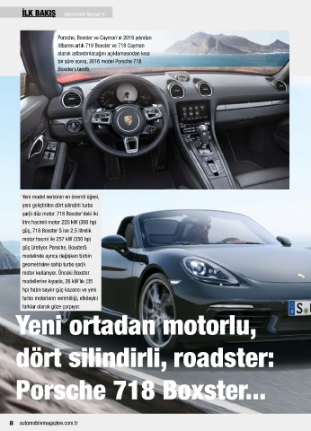 Porsche, Boxster ve Cayman’ın 2016 yılından Yeni nesil modeller, 718 Boxster ve 718 Boxster S adını taşıyor. İki koltuklu üstü açılabilen otomobiller daha yüksek güce sahip
