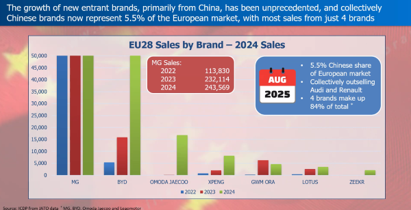Au total, quatre marques – MG, BYD, Omoda-Jaecoo (Chery) et Leapmotor – détiennent 84 % des parts des nouveaux entrants chinois. Tesla, de son côté, poursuit sa croissance avec un réseau en propre, mais sa stratégie reste singulière.