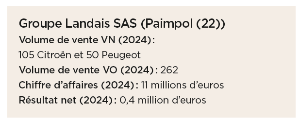 Avec un chiffre d’affaires de 11 mil­lions d’euros réalisé en 2024, il a affi­ché un résultat net de 400 000 euros.Nos volumes VN sont modestes, mais la rentabilité est au rendez‑vous grâce à l’implication quotidienne de nos 32 collaborateurs“, explique François Landais, qui insiste sur le fait que le prix de la concession de l’année est avant tout une œuvre collective.