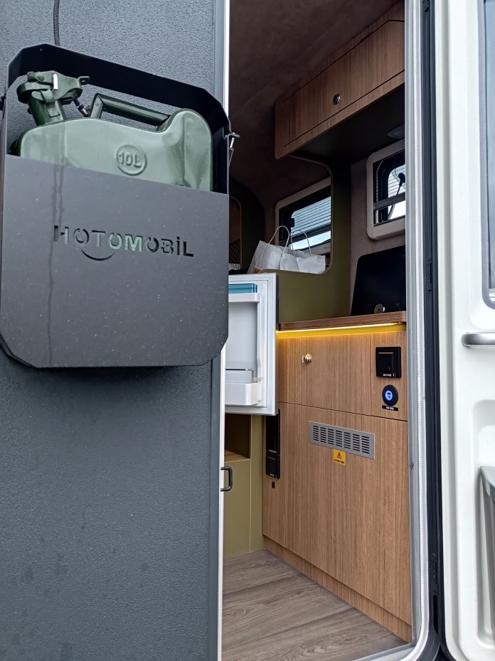 - Hotomobil olarak gövde malzemelerimizde uzay mekikleri, yat ve savunma sanayi ürünlerinde kullanılan yüksek kimyasal ve mekanik dayanımlara sahip uzun ömürlü hafif dayanımı yüksek ve esnek yapıda sızdırmazlık kabiliyeti çok yüksek elyaf takviyeli kompozit malzemeler kullanılmaktadır.