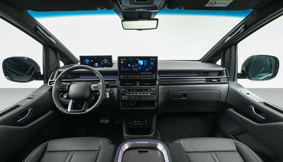 Elektrikli versiyona özgü kapalı ön tasarım, yatay ışık imzası ve sade yüzeyler, hem aerodinamik verimliliği artırıyor hem de STARIA Elektrik’e güçlü bir elektrikli kimlik kazandırıyor. Geniş sürgülü kapılar ve geniş yükleme alanı ise yolcu ve yük erişimini kolaylaştırıyor. STARIA Elektrik, farklı kullanım senaryolarına yönelik iki konfigürasyonla sunuluyor. LUXURY (7 koltuklu), aile ve bireysel kullanım odaklı, üst düzey konfor sunarken WAGON (9 koltuklu) ise geniş aileler, grup taşımacılığı ve ticar kullanım için ideal.