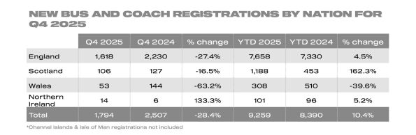 Growth for the year was driven by single and double-deck bus and coach deliveries, up 24.9% and 25.5% to 2,465 and 2,010 units respectively. Minibus uptake fell -0.7% to 4,784 units in 2025 as a result of a weak performance in the second half of the year.2