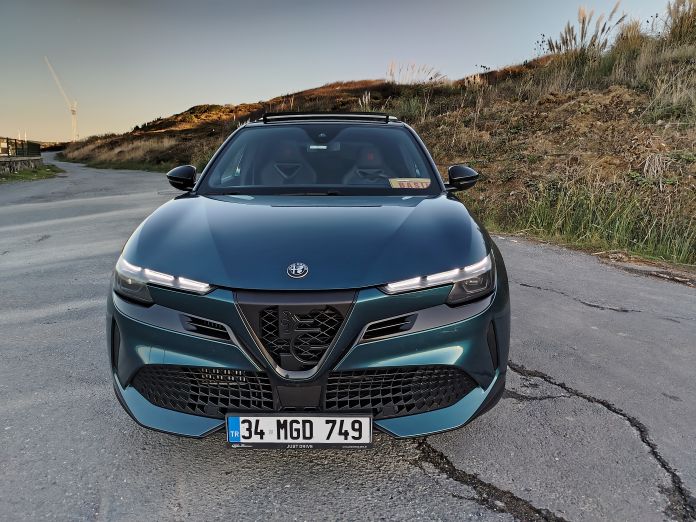 Öncelikle dar LED gündüz farları ve Alfa’nın tipik ızgarasıyla ön kısım sportif ve kusursuz bir tasarıma sahip.