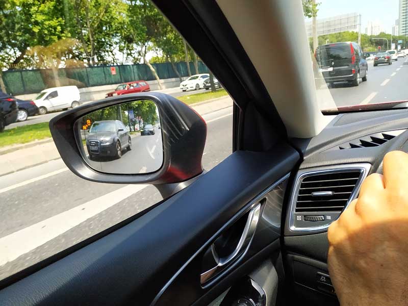 Yine bir diğer Mazda3 Hb’de yer alan sürüş güvenliği sağ ve sol aynada yer alan kör nokta ve sollamalarda sizi uyaran sarı ışık sistemi. Dikkatinizi çekiyor.