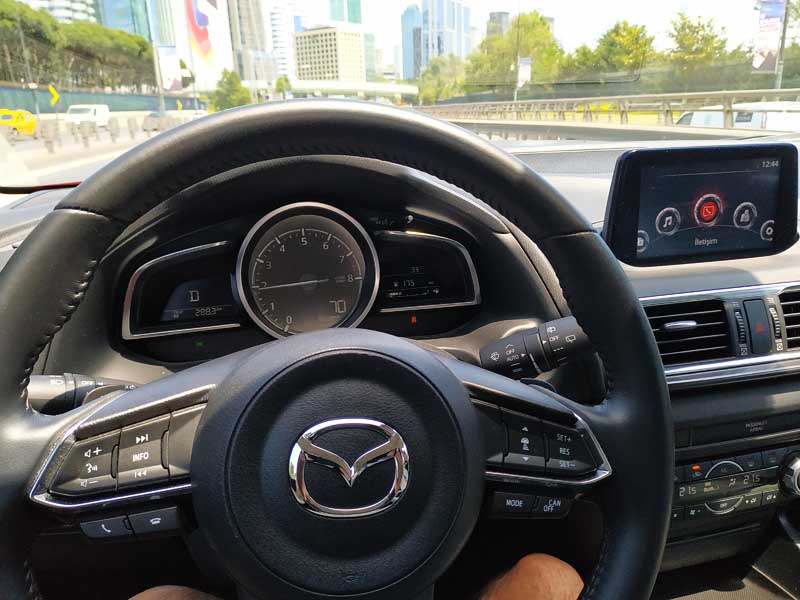 Özellikle, direksiyon büyüklüğü ve çapı bence tutuş ve kullanım açısından Mazda3 HB de çok iyi düşünülmüş.