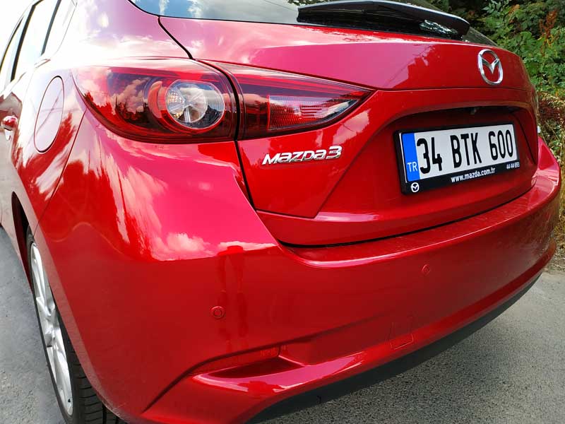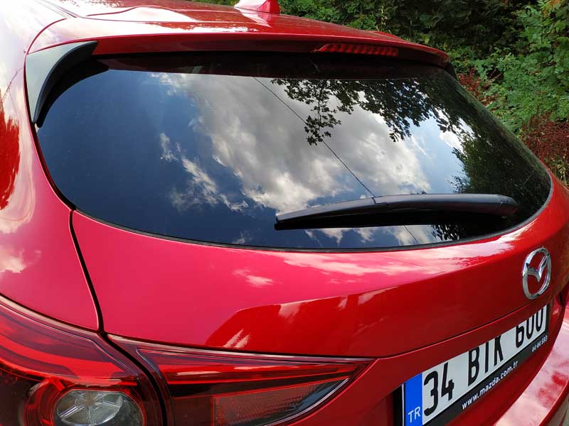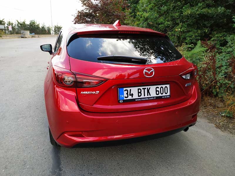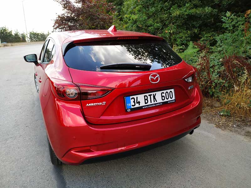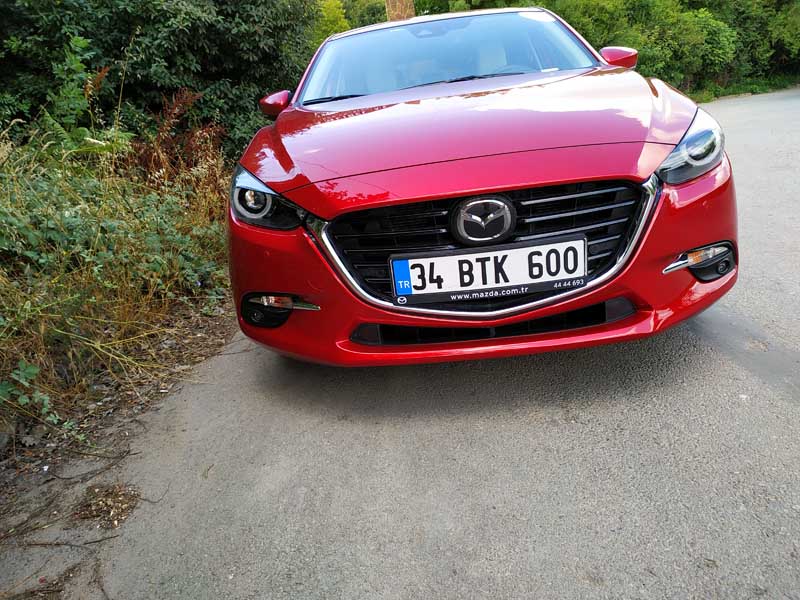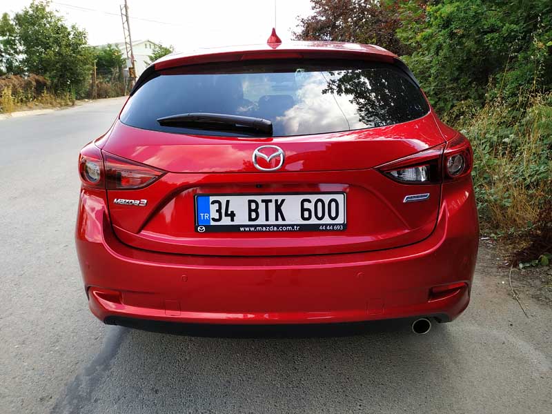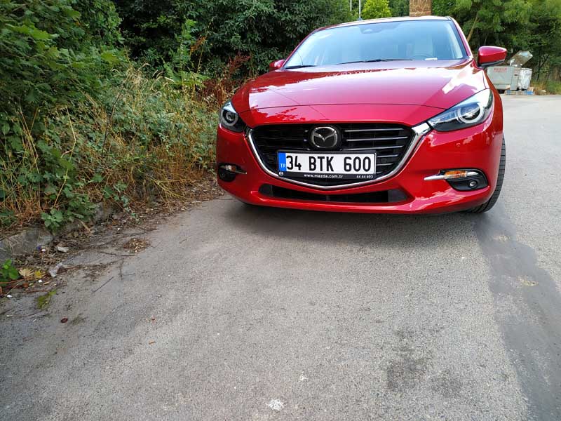 Aracın ön tarafının ne kadar kaslı ve büyük durduğunu söylememe gerek yok. Yeni Mazda3 2019 modelinde ise ön tarafta ciddi bir şekilde değişim ve makyajlanma söz konusu. Yakın zamanda gelecek ve bizde yeni Mazda3’ün neye benzediğini yakından göreceğiz. Mazda3 HB Test aracımızın üzerinde Dunlop marka Maxx model Sport lastikler bulunmakta. Bu lastikler kullanımda her ne kadar konfordan çok ödün vermiyor gibi gözüküyorsa da hız ve performans bakımından aslında iyi. Özellikle Mazda3 Hb fren destek sistemi ve ABS ayarı beni yine kendine hayran bıraktı. Özellikle aracın frenleri oldukça iyi çalışmakta. Fakat bu lastikler bazı kaygan hava yol şartlarında asfaltta özellikle testimiz esnasında 60-70 km hızlar ile sert ani frenajlarda kayarak durma mesafesini biraz uzattı.