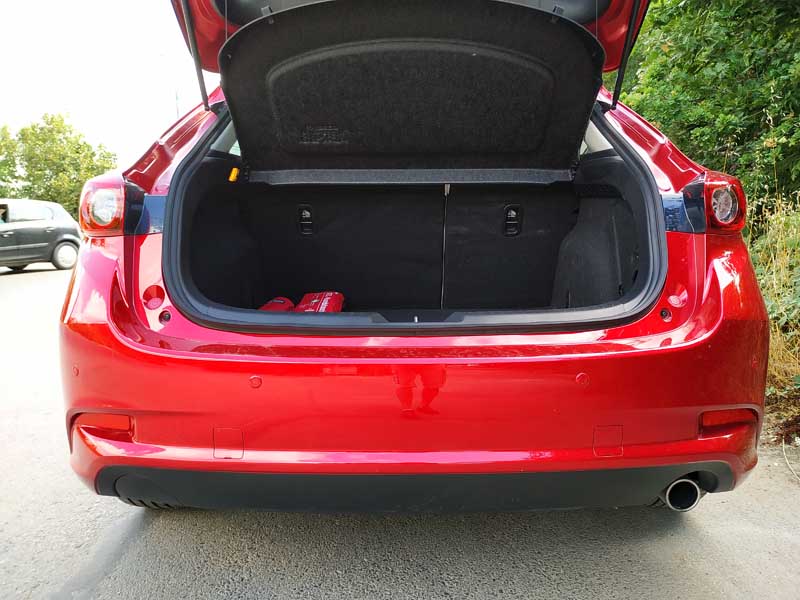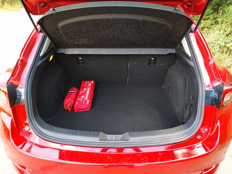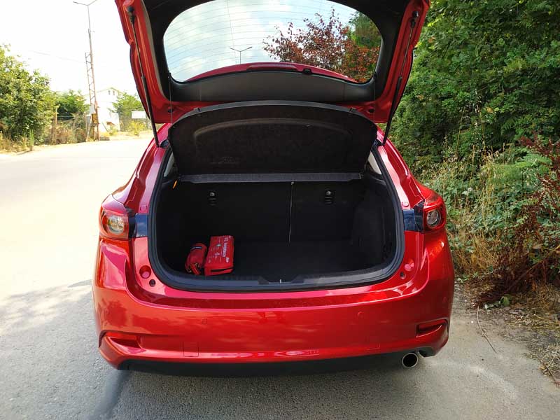 Mazda3 Hb bagajınıza baktığımızda ise sizi tatmin eden, oldukça geniş ve büyük arka bagaj yer almakta. Bagajı el ile açıp kapamanız yerine otomatik olması iyi olurdu. Koltukların tam olarak ufak bir el hareketi ile yatması güzel bir şey, bagaj hacmi oldukça genişlemektedir.