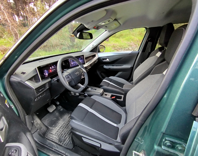 Koltuklar çarpıcı tasarımları ve kontrast dikişleriyle dikkat çekiyor. Kumaşlar ve kapı panelleri gibi yüzeyler geri dönüştürülmüş malzemelerden üretilmiş. Tamamen sürdürülebilir kaynaklardan elde edilen geri dönüştürülmüş kumaşlara sahip. Aynı yaklaşım, enerji tasarruflu Eco LED farlara sahip yeni Frontera’nın aydınlatma ünitelerinde de kendini gösteriyor. Ayrıca, GS donanım paketindeki direksiyon simidi vegan sentetik deriden üretilmiş.